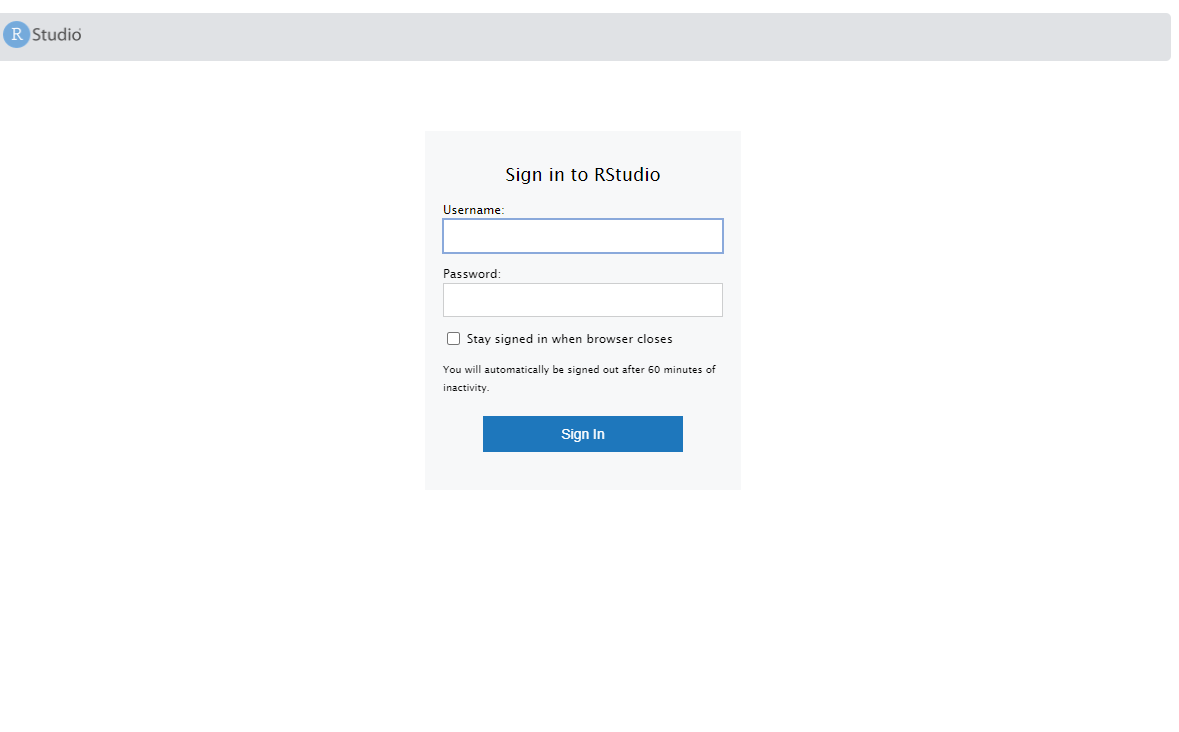 이제 인터넷 주소 창에 localhost:8787을 입력하자. 그러면 rstudo-server 로그인 창이 뜰 것이다.